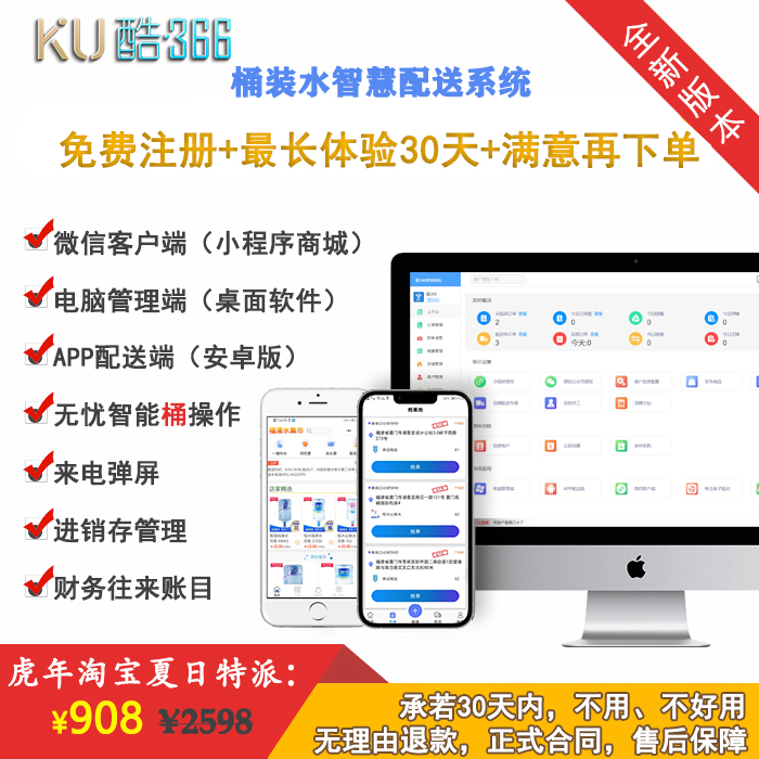 水厂送水行业双宝桶装水配送管理软件小程序商城送水APP来电屏