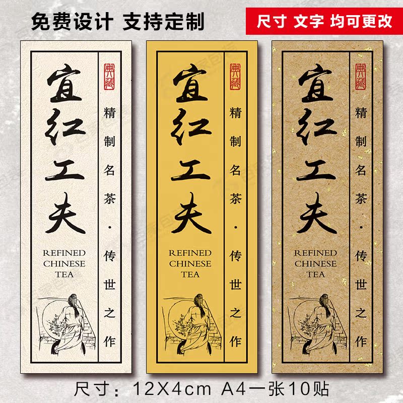 不干胶标贴茶叶通用标签贴纸宜红工夫标签定制设计祥发包装热门设计联盟服务商