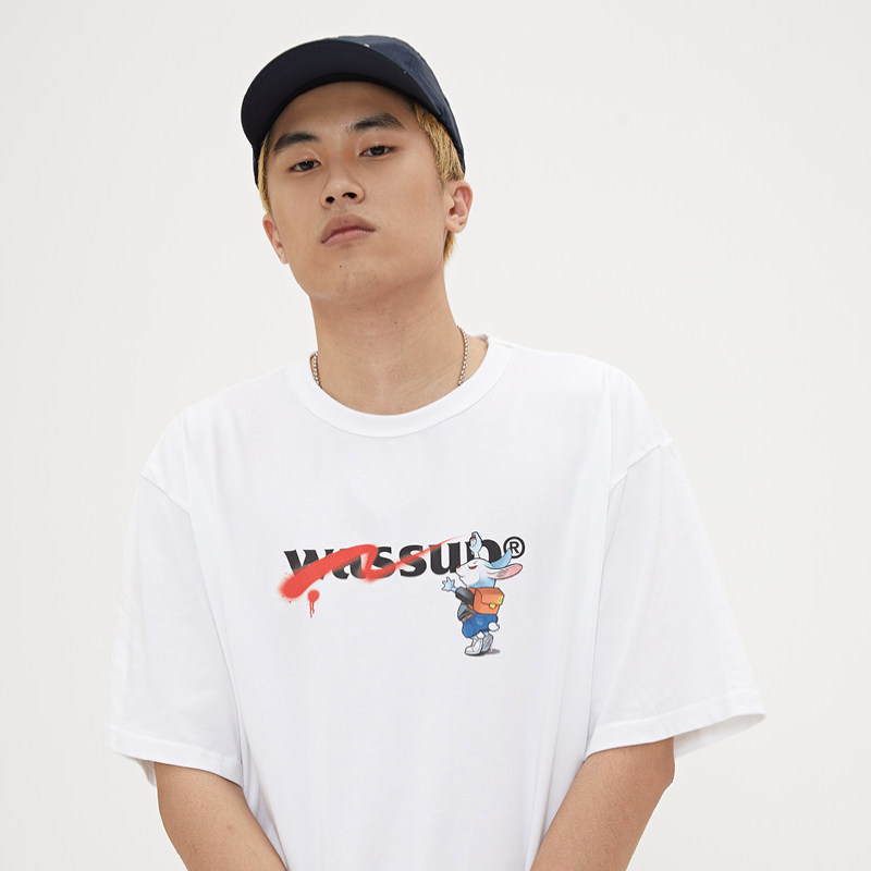 美潮鸭 WASSUP原创手绘设计卡通兔子涂鸦印花短袖潮流休闲水洗T恤热门设计联盟服务商