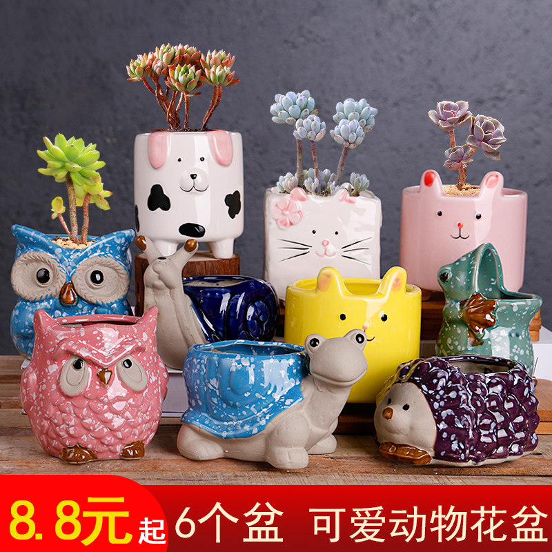 卡通动物多肉花盆陶瓷清仓简约大号特价大口径创意粗陶透气小花盆热门设计联盟服务商