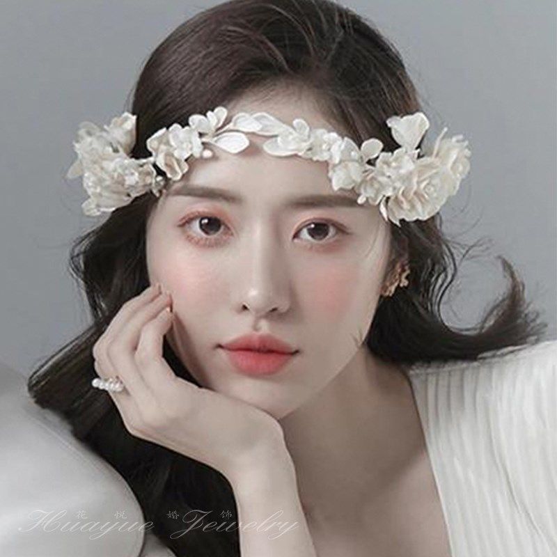 新娘森系新款白色花瓣造型仙气头饰发箍结婚礼服婚纱摄影跟妆手工热门设计联盟服务商
