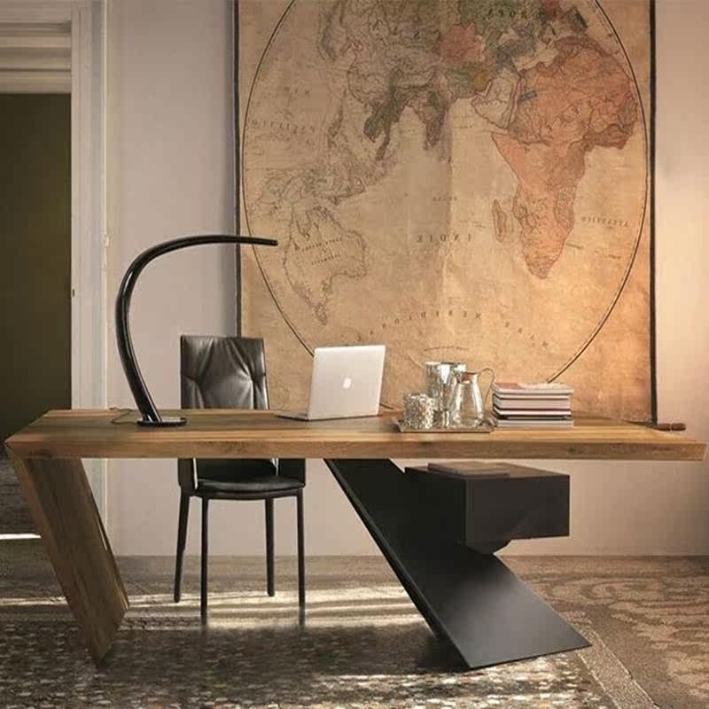 北欧设计师工业风实木工作台 个性复古铁艺创意书桌带抽屉办公桌热门设计联盟服务商