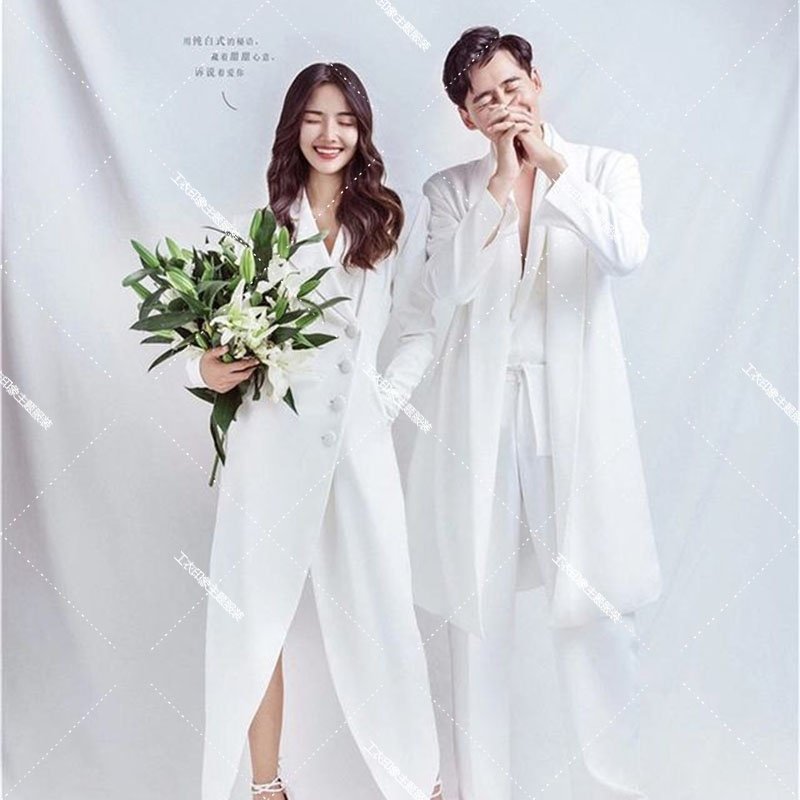 影楼婚纱摄影情侣旅拍主题服装白色男女西服套装韩式森系包臀裙热门设计联盟服务商
