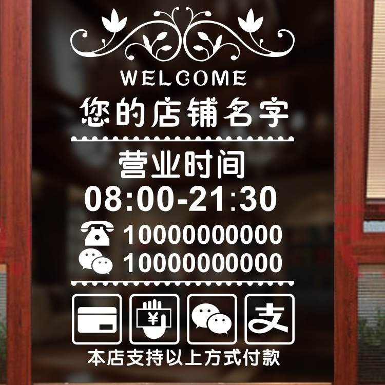 欢迎光临营业时间玻璃门贴纸咖啡奶茶服装店铺橱窗装饰墙贴画创。热门设计联盟服务商