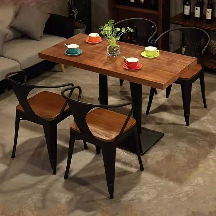美式实木餐桌椅餐饮店咖啡厅奶茶店连锁汉堡餐厅2人 4人桌椅组合热门设计联盟服务商