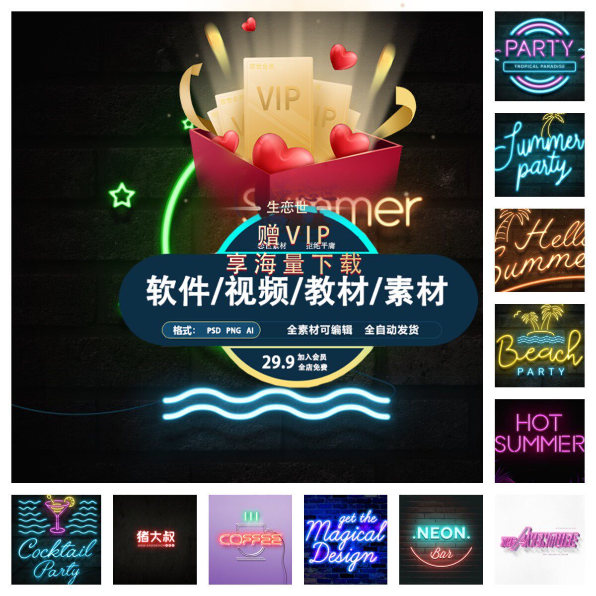霓虹灯发光聚会派对酒吧字体文字PSD特效样式模板设计图背景素材热门设计联盟服务商
