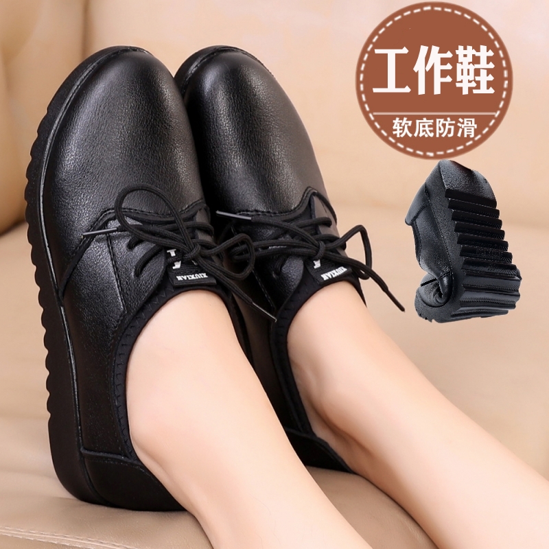 康奈官方店工作鞋女平底上班鞋防滑厨房餐厅皮鞋黑色休闲鞋通热门设计联盟服务商