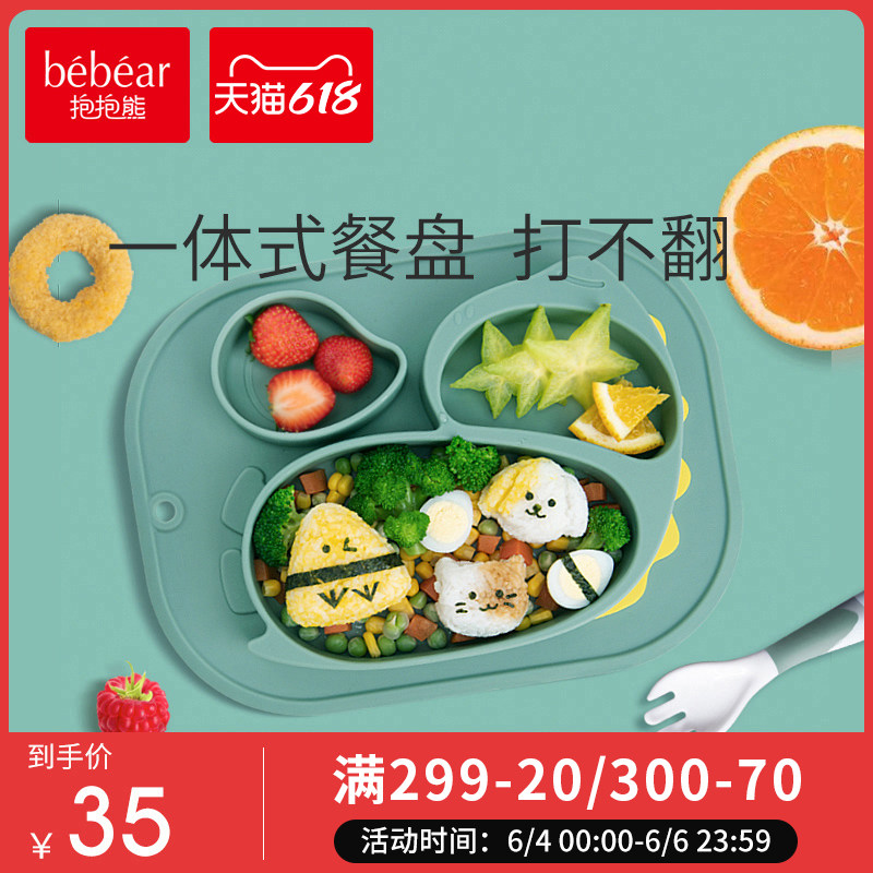 抱抱熊宝宝餐盘儿童分格餐盘婴儿吸盘一体式硅胶吃饭辅食卡通餐具热门设计联盟服务商