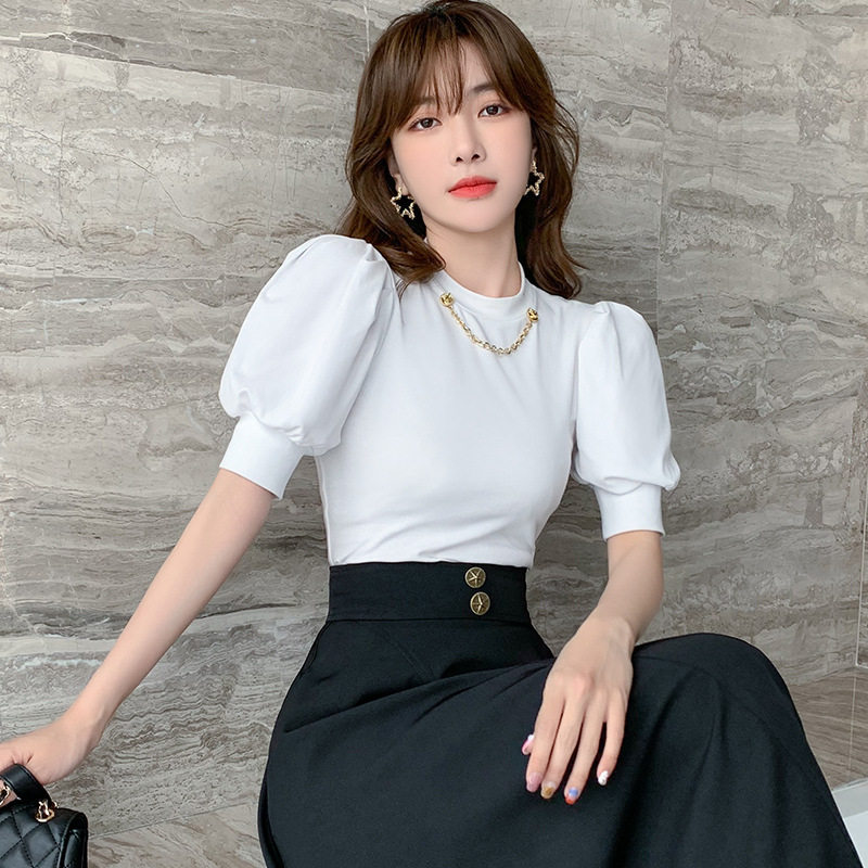 坚果服饰 小众设计感韩版短袖t恤2021夏季新款时尚女装泡泡袖上衣热门设计联盟服务商