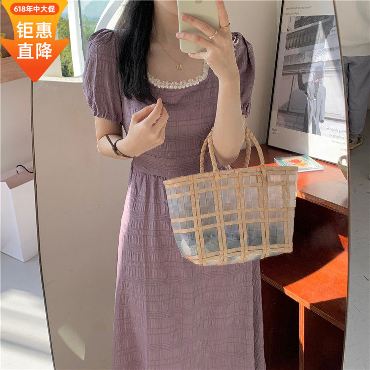 2022裙子势力周其他范洛满就送夏季紫色温柔方领泡泡袖收腰连衣裙热门设计联盟服务商