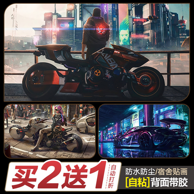 赛博朋克海报墙贴纸ins风大学生宿舍卧室装饰改造二次元贴画自粘热门设计联盟服务商