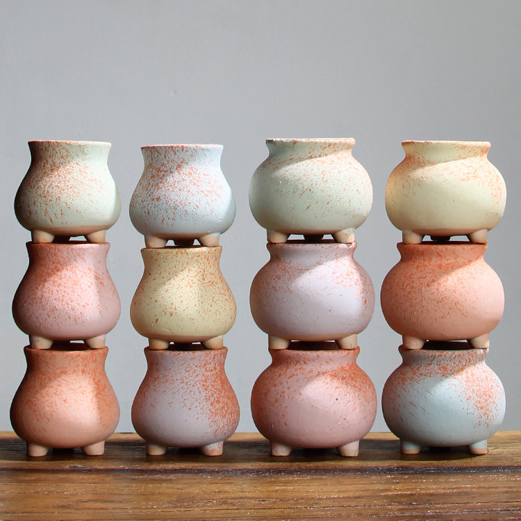 多肉花盆粗陶透气简约风格室外吸水控型小花盆帖色麦饭石拇指盆热门设计联盟服务商