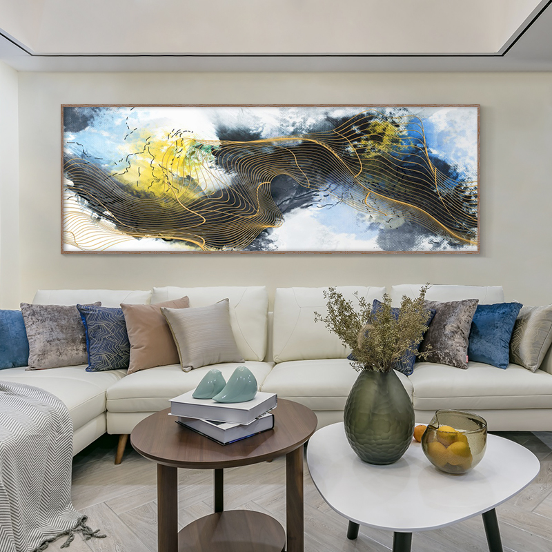 新中式客厅装饰画线条抽象艺术挂画现代轻奢沙发背景墙画横幅壁画热门设计联盟服务商