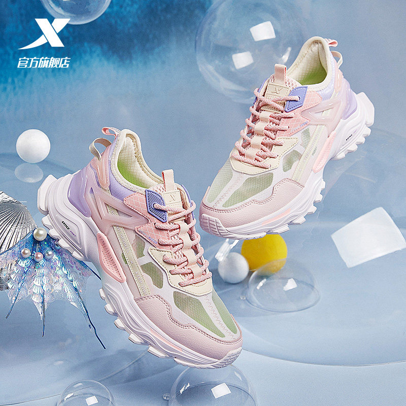 X特步女鞋山海粉色运动鞋子透气品牌正品名牌老爹鞋官网站旅游鞋热门设计联盟服务商