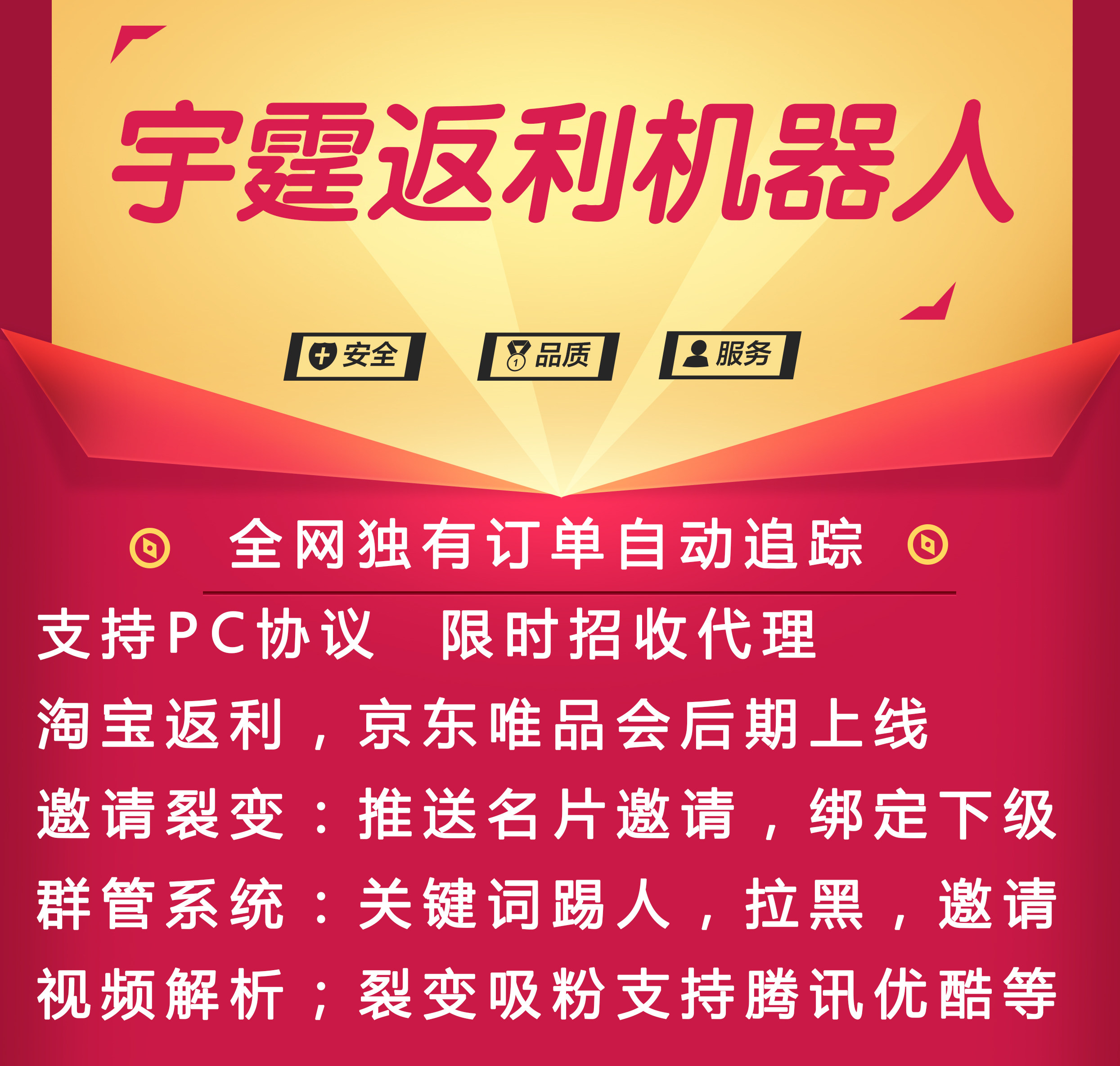 返利机器人宇霆淘宝客返利机器人群管导购自动踢人统计软件热门设计联盟服务商