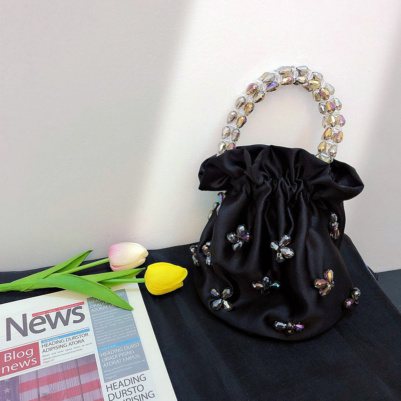 21年春新款INS设计师时尚洋气手工水桶包手工串珠编织缎面手拎包热门设计联盟服务商
